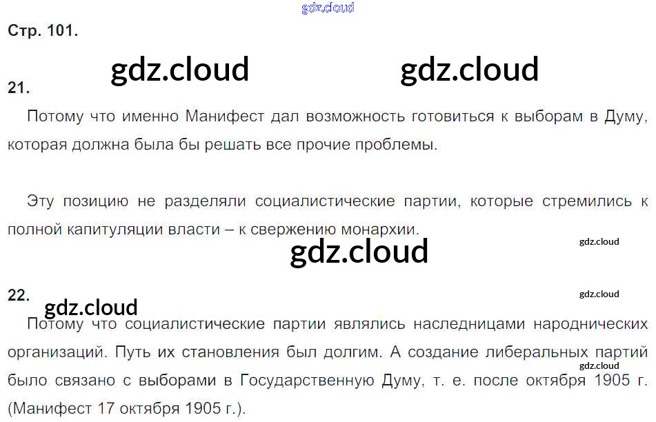 Ответ на задание 101 Рабочая тетрадь История за 9 (девятый) класс Стаферова, Шевырев Инновационная школа 2019 ФГОС онлайн и без номера телефона.