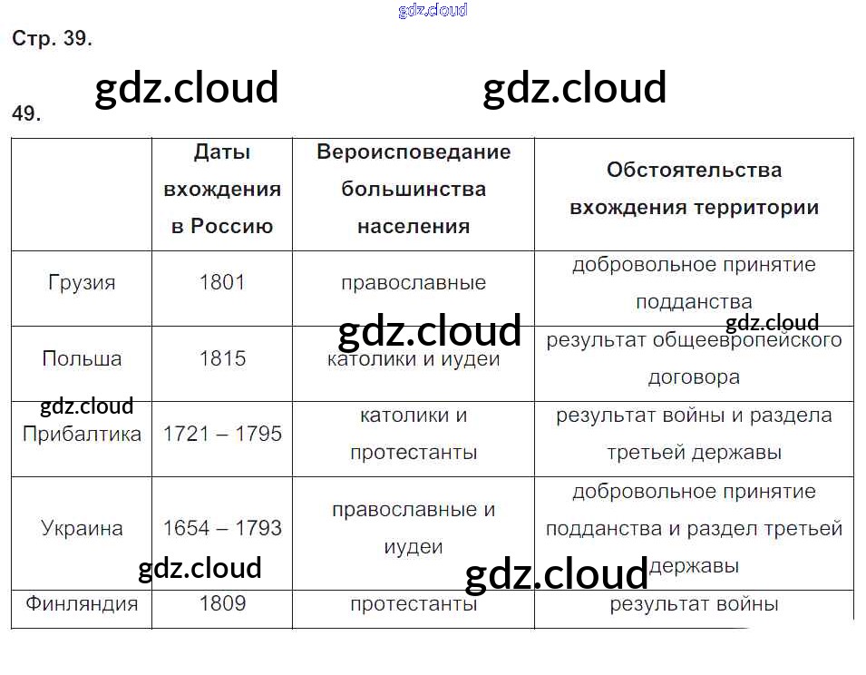 Ответ на задание 39 Рабочая тетрадь История за 9 (девятый) класс Стаферова, Шевырев Инновационная школа 2019 ФГОС онлайн и без номера телефона.