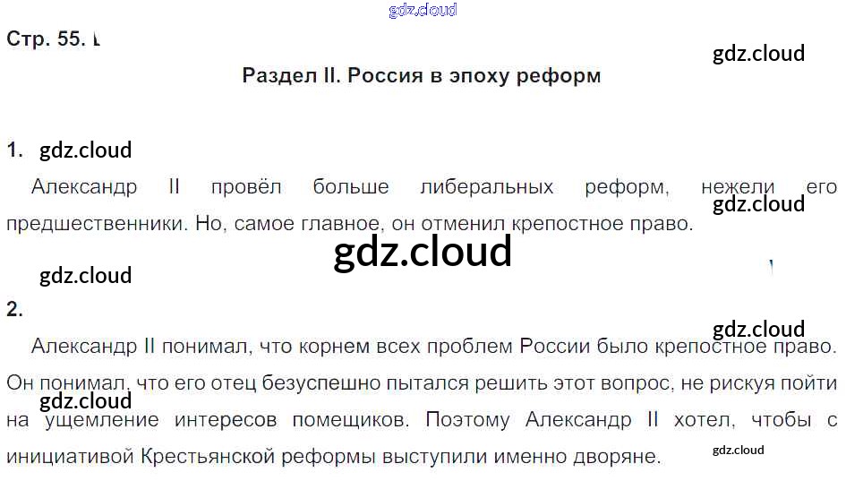 Ответ на задание 55 Рабочая тетрадь История за 9 (девятый) класс Стаферова, Шевырев Инновационная школа 2019 ФГОС онлайн и без номера телефона.