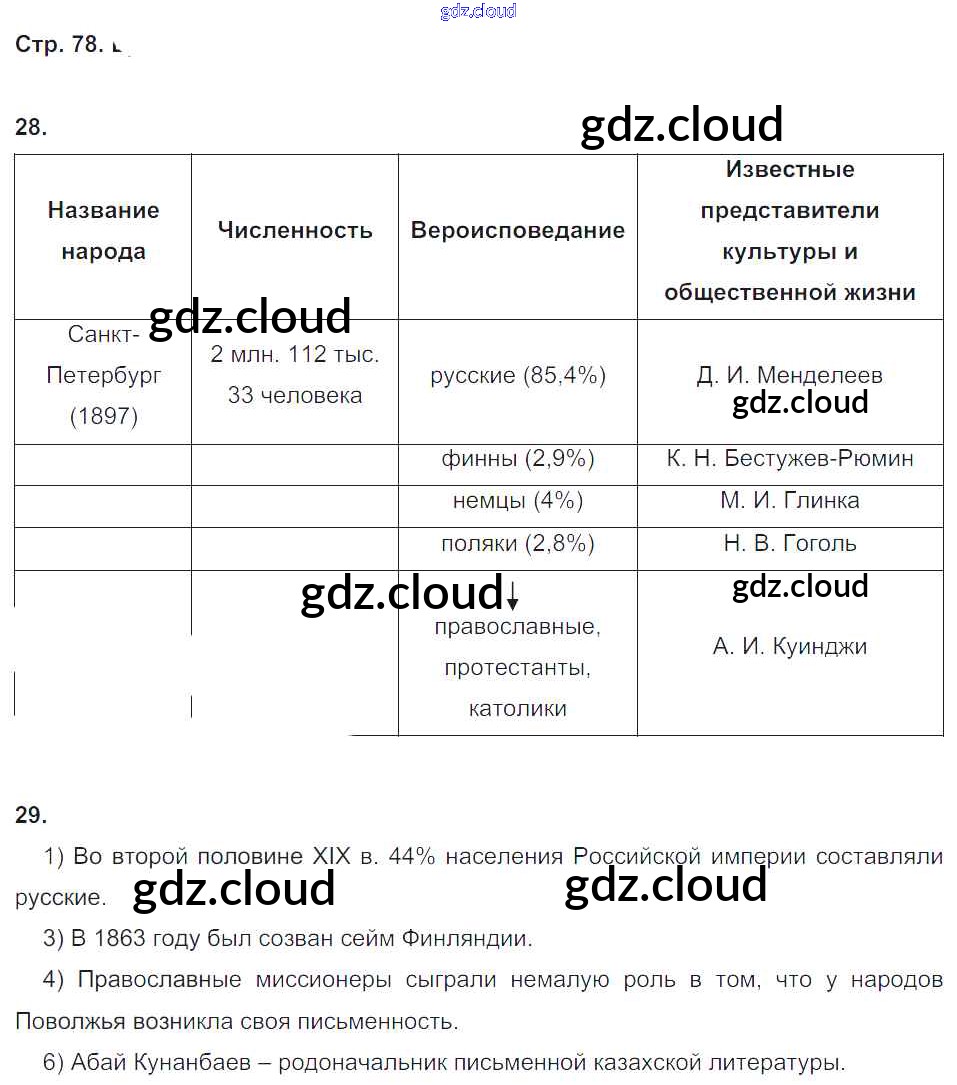 Ответ на задание 78 Рабочая тетрадь История за 9 (девятый) класс Стаферова, Шевырев Инновационная школа 2019 ФГОС онлайн и без номера телефона.