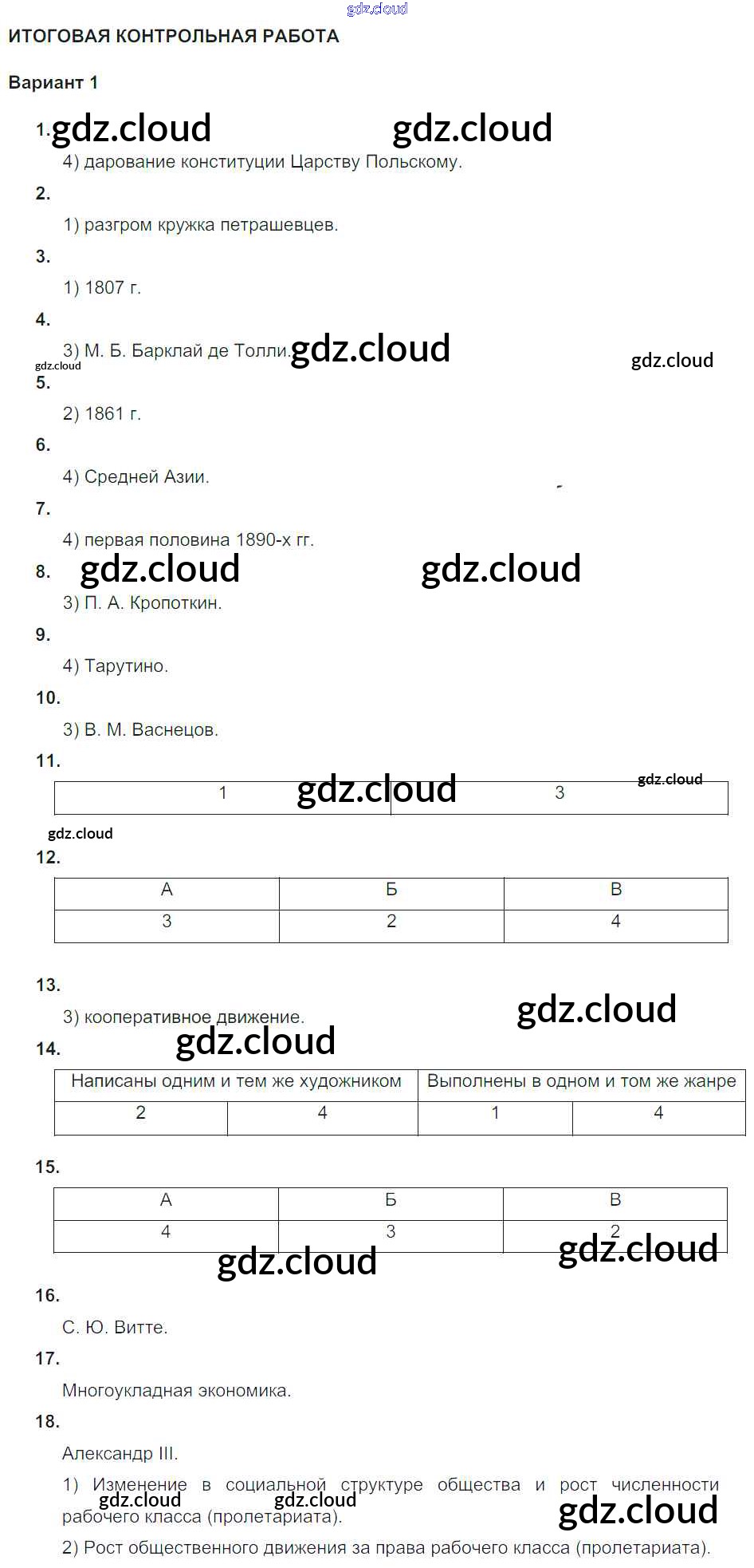 Ответ на задание Вариант 1 Тематический контроль История за 9 (девятый) класс Артасов, Войцик 2019