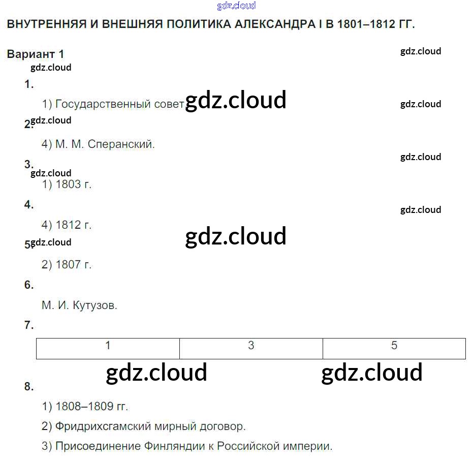 СР-1. Варианты Ответы к теме Российская империя в первой половине XIX века по Истории 9 класс Тематический контроль Артасов Национальное образование