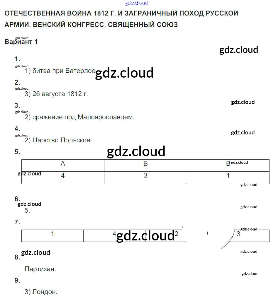 Ответ на задание 1 Тематический контроль История за 9 (девятый) класс Артасов, Войцик 2019