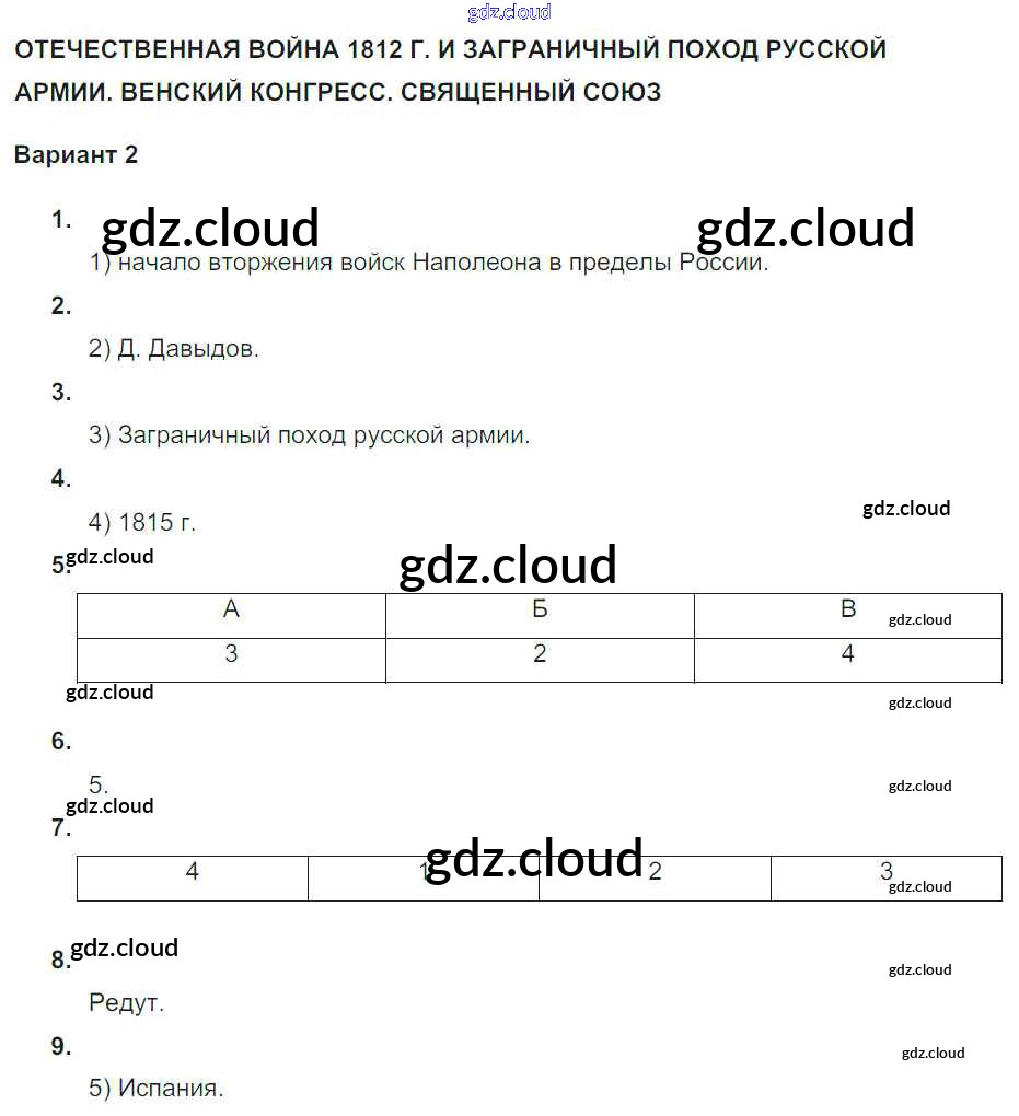 СР-2. Варианты Ответы к теме Российская империя в первой половине XIX века по Истории 9 класс Тематический контроль Артасов Национальное образование