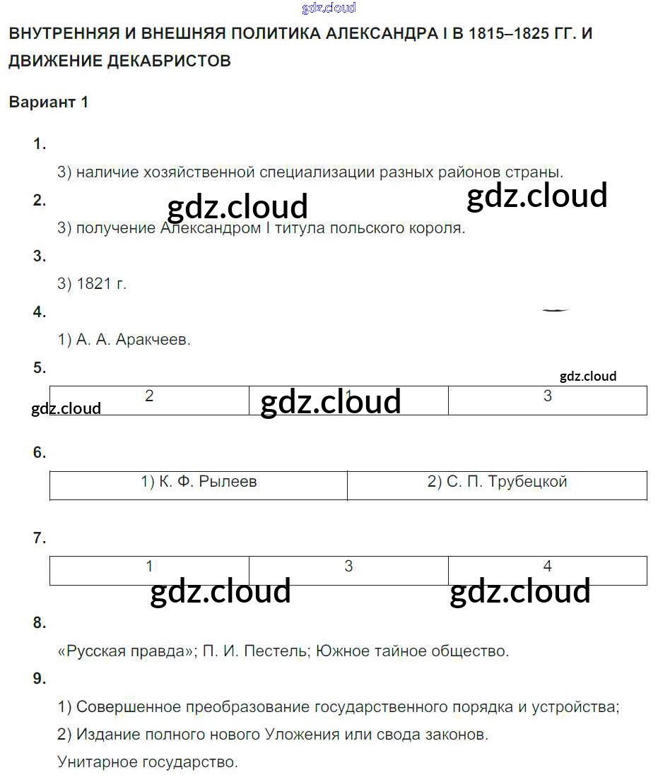 СР-3. Варианты Ответы к теме Российская империя в первой половине XIX века по Истории 9 класс Тематический контроль Артасов Национальное образование