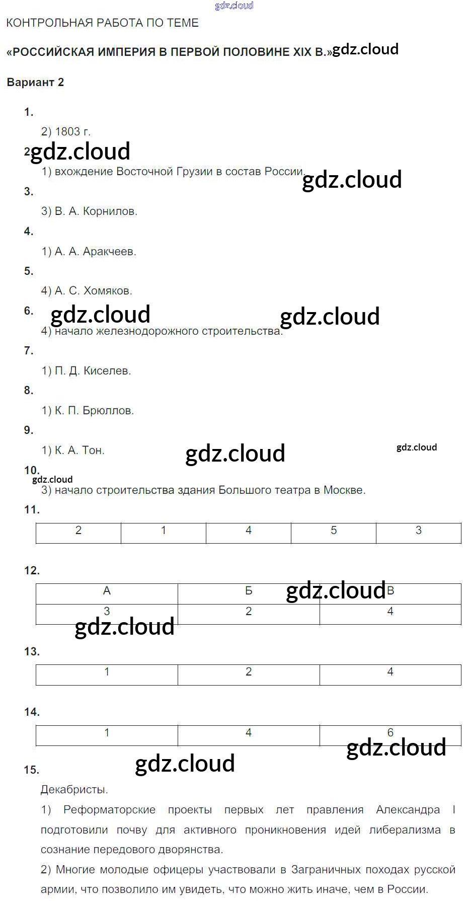 КР. Варианты Ответы к теме Российская империя в первой половине XIX века по Истории 9 класс Тематический контроль Артасов Национальное образование