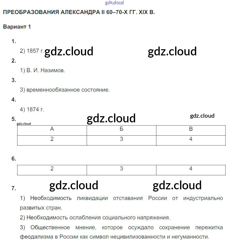 СР-1. Варианты Ответы к теме Российская империя во второй половине XIX в по Истории 9 класс Тематический контроль Артасов Национальное образование