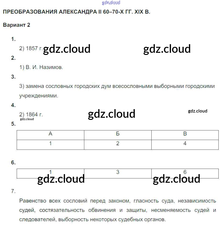 СР-1. Варианты Ответы к теме Российская империя во второй половине XIX в по Истории 9 класс Тематический контроль Артасов Национальное образование