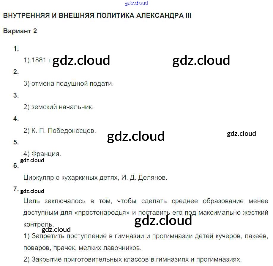 СР-3. Варианты Ответы к теме Российская империя во второй половине XIX в по Истории 9 класс Тематический контроль Артасов Национальное образование