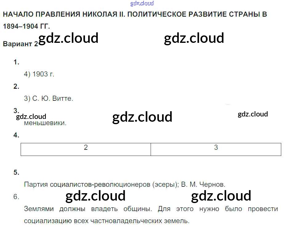 СР-1. Варианты Ответы к теме Россия в 1894–1914 гг. по Истории 9 класс Тематический контроль Артасов Национальное образование