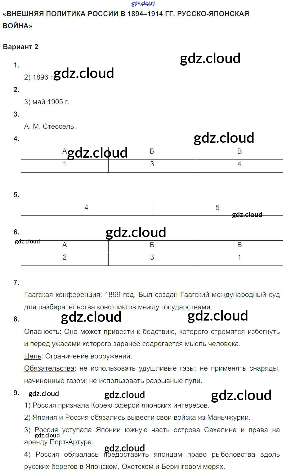 СР-2. Варианты Ответы к теме Россия в 1894–1914 гг. по Истории 9 класс Тематический контроль Артасов Национальное образование
