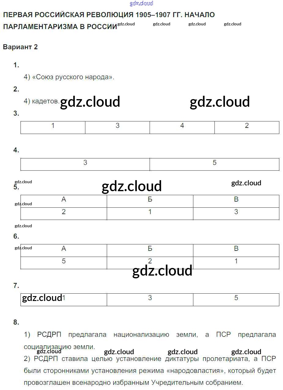 СР-3. Варианты Ответы к теме Россия в 1894–1914 гг. по Истории 9 класс Тематический контроль Артасов Национальное образование