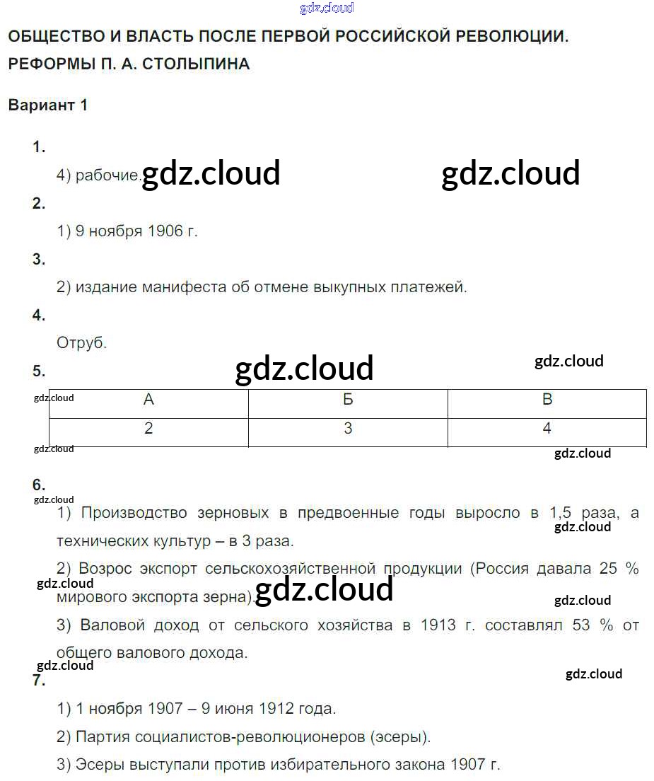 СР-4. Варианты Ответы к теме Россия в 1894–1914 гг. по Истории 9 класс Тематический контроль Артасов Национальное образование