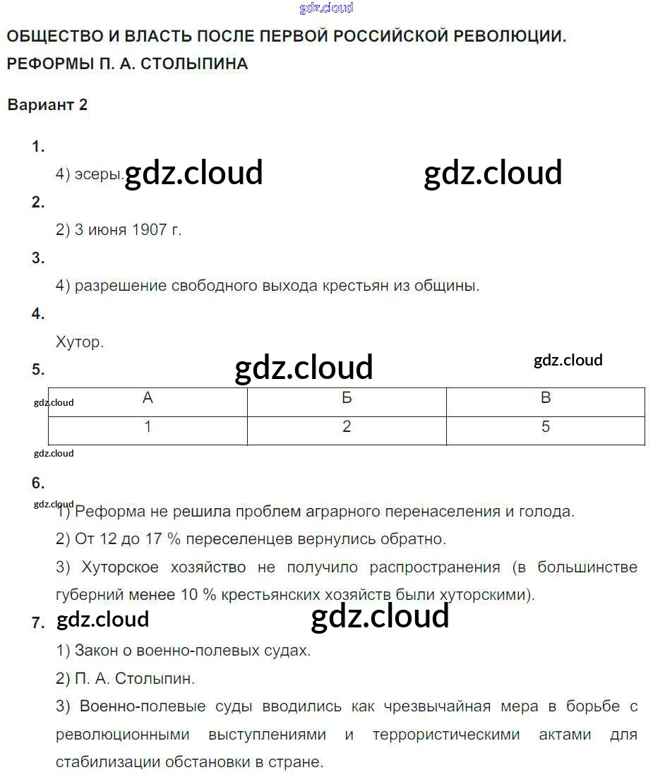 СР-4. Варианты Ответы к теме Россия в 1894–1914 гг. по Истории 9 класс Тематический контроль Артасов Национальное образование