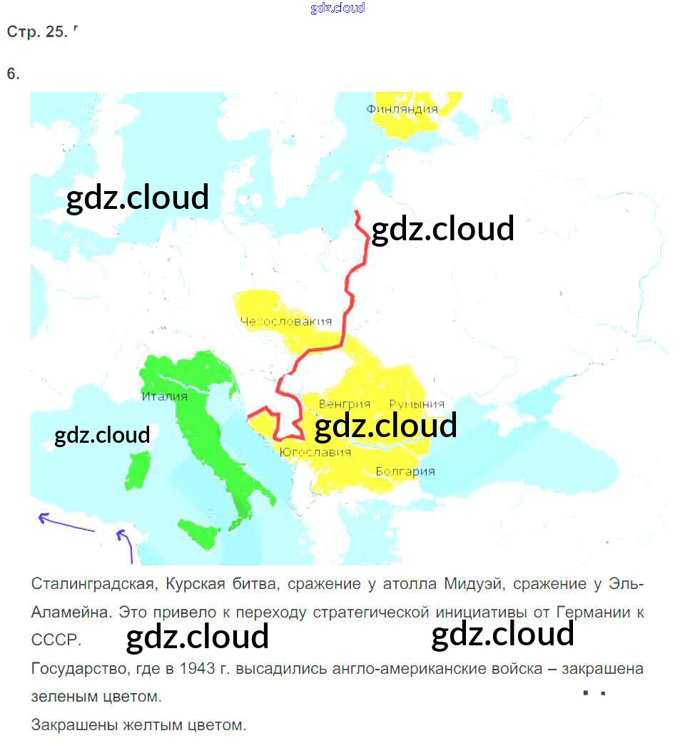 Ответ на задание 25 Тетрадь-тренажер История за 9 (девятый) класс Корунова Сферы 2018 ФГОС онлайн и без номера телефона.