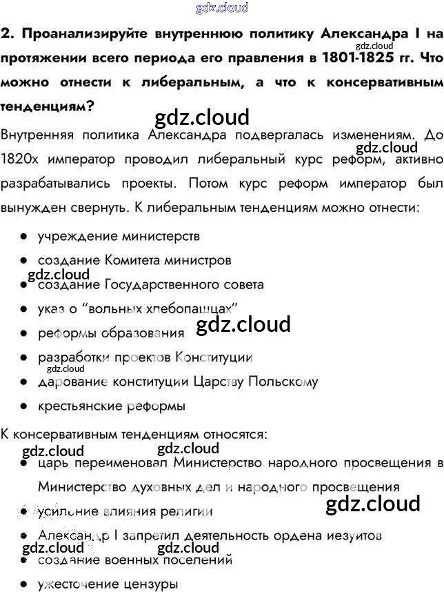 Ответ на задание 2 Учебник История за 9 (девятый) класс Арсентьев, Данилов, Левандовский 2016 Часть 1, 2