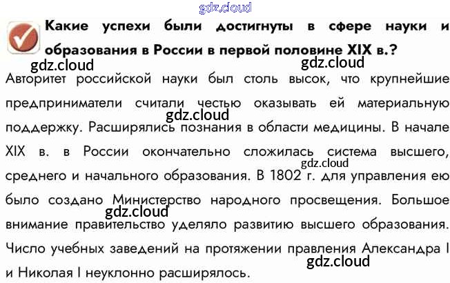 Вопрос в начале параграфа Культурное пространство империи в первой половине XIX в по Истории 9 класс Учебник Арсентьев Часть 1, 2 Просвещение