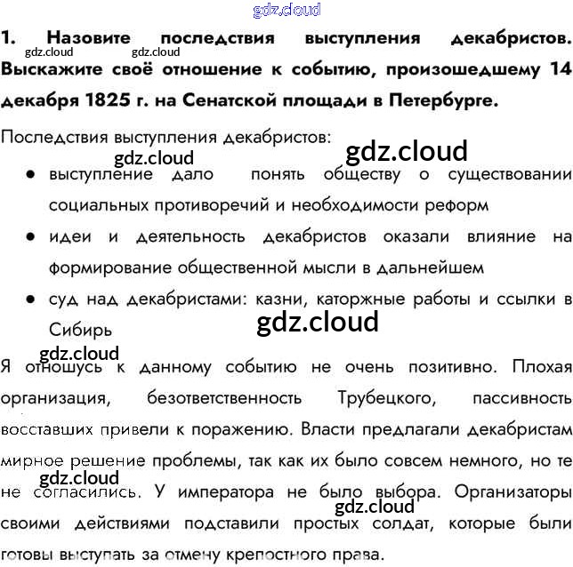 Ответ на задание 1 Учебник История за 9 (девятый) класс Арсентьев, Данилов, Левандовский 2016 Часть 1, 2