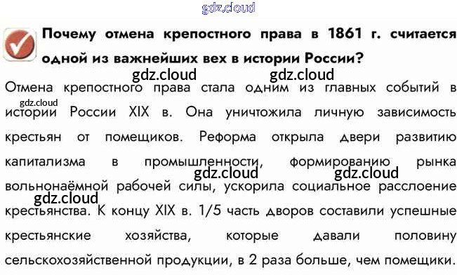 Вопрос в начале параграфа § 16. Александр II: начало правления. Крестьянская реформа 1861 г. по Истории 9 класс Учебник Арсентьев Часть 1, 2 Просвещение