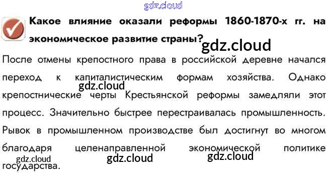 Вопрос в начале параграфа § 18. Социально-экономическое развитие страны в пореформенный период по Истории 9 класс Учебник Арсентьев Часть 1, 2 Просвещение
