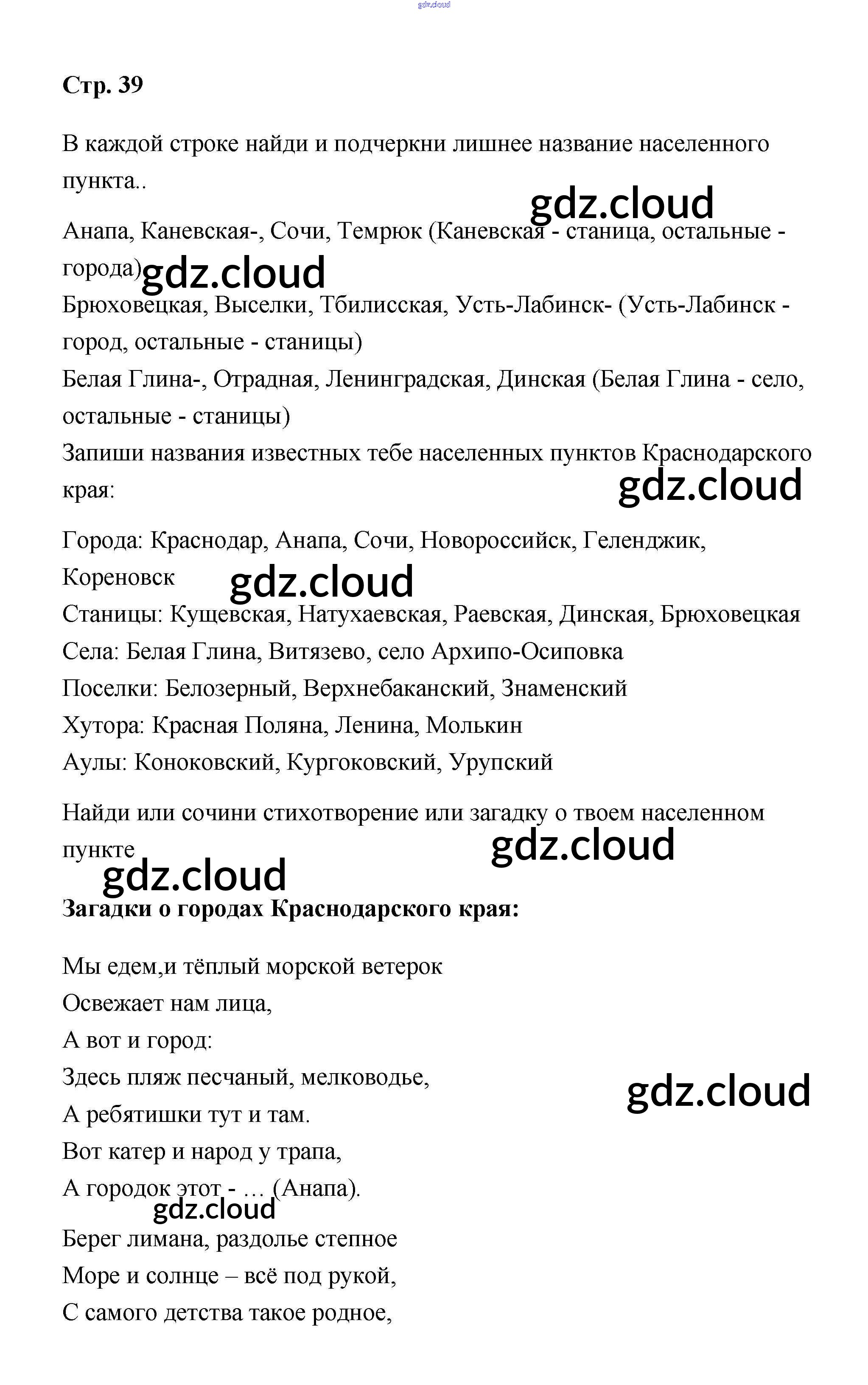 Ответ на задание 39 Рабочая тетрадь Кубановедение за 2 (второй) класс Еременко 2020 ФГОС онлайн и без номера телефона.