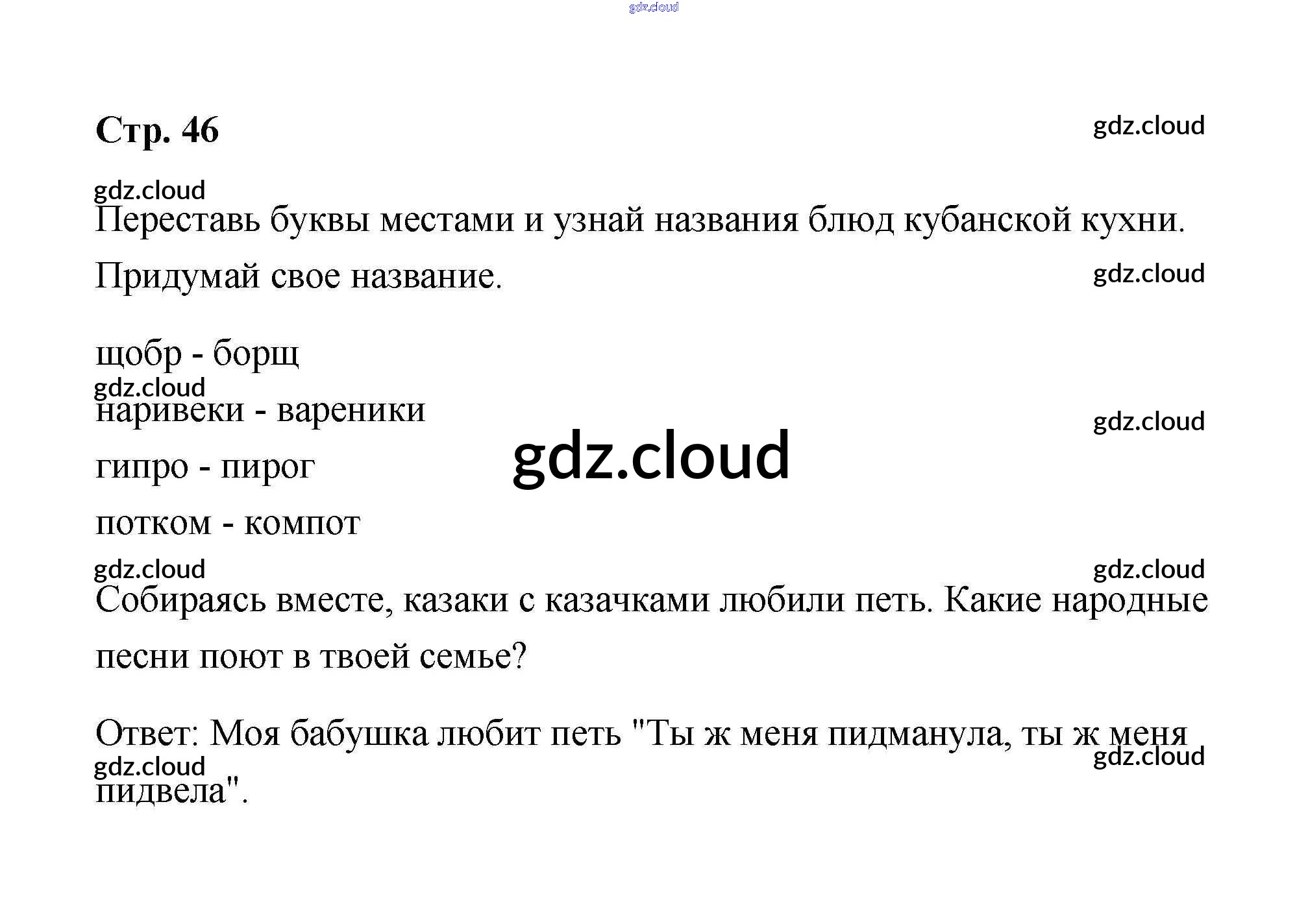 Ответ на задание 46 Рабочая тетрадь Кубановедение за 2 (второй) класс Еременко 2020 ФГОС онлайн и без номера телефона.