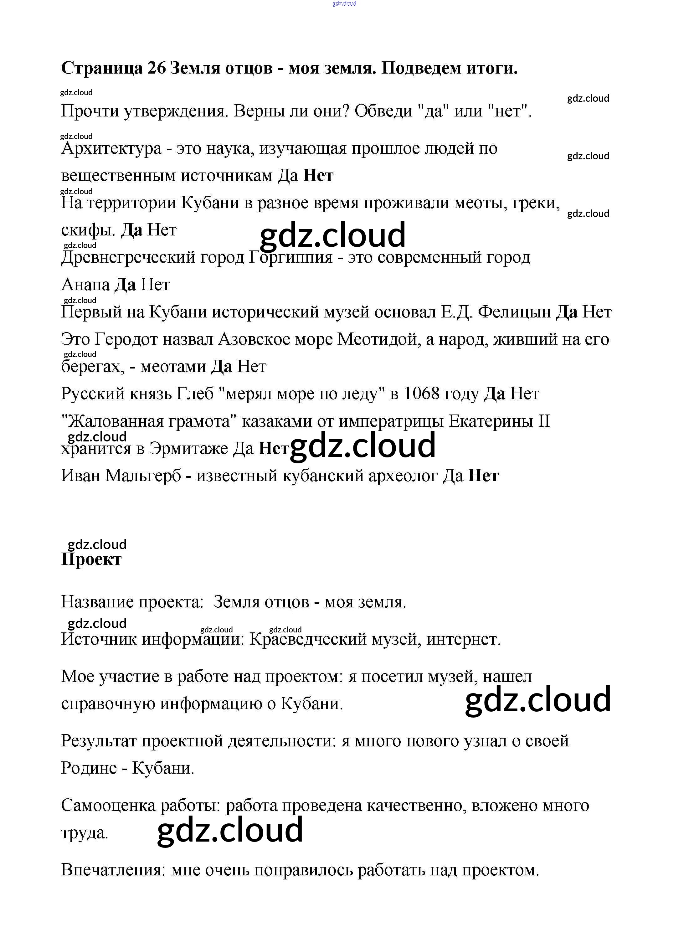 Ответ на задание 26 Рабочая тетрадь Кубановедение за 4 (четвертый) класс Науменко 2020 ФГОС онлайн и без номера телефона.