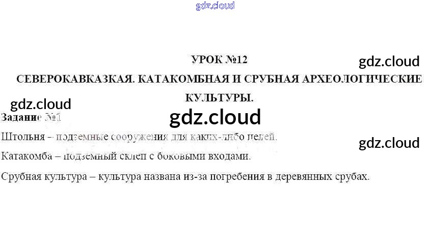 Ответы к Уроку № 12. Северокавказкая, Катакомбная и Срубная археологические культуры по Кубановедению 5 класс Рабочая тетрадь Трехбратов Традиция