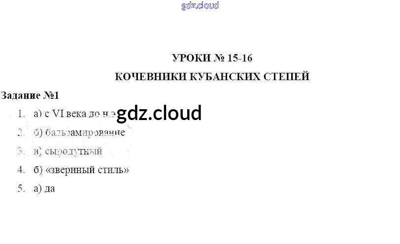Ответы к Уроку № 15-16. Кочевники кубанских степей по Кубановедению 5 класс Рабочая тетрадь Трехбратов Традиция