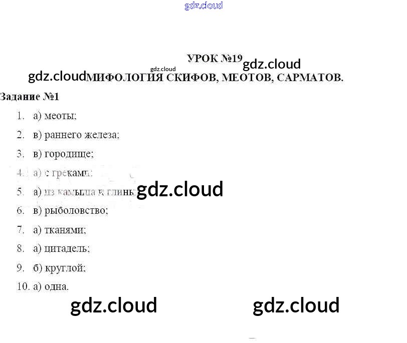 Ответы к Уроку № 19. Мифология скифов, меотов, сарматов по Кубановедению 5 класс Рабочая тетрадь Трехбратов Традиция