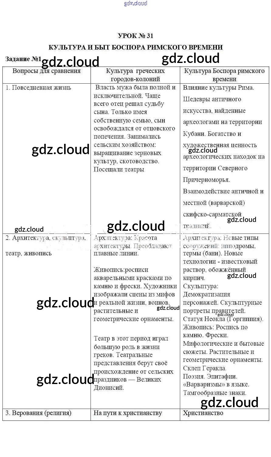 Ответы к Уроку № 31. Культура и быт Боспора Римского времени по Кубановедению 5 класс Рабочая тетрадь Трехбратов Традиция