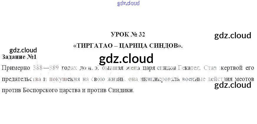 Ответы к Уроку № 32. Тиргатао – царица Синдов по Кубановедению 5 класс Рабочая тетрадь Трехбратов Традиция