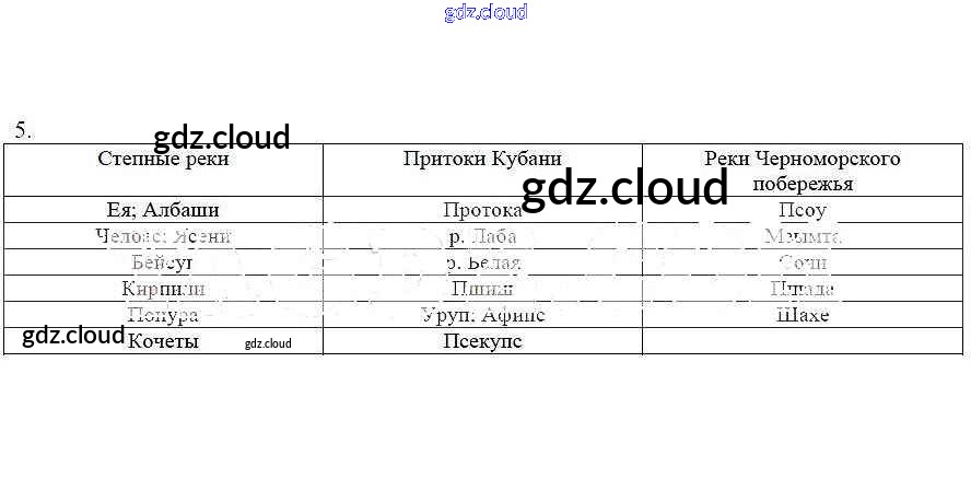Ответ на задание 5 Рабочая тетрадь Кубановедение за 6 (шестой) класс Близнюк 2019 онлайн и без номера телефона.