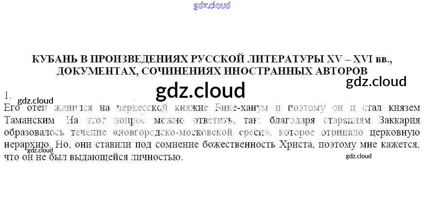 Ответ на задание 1 Рабочая тетрадь Кубановедение за 6 (шестой) класс Близнюк 2019