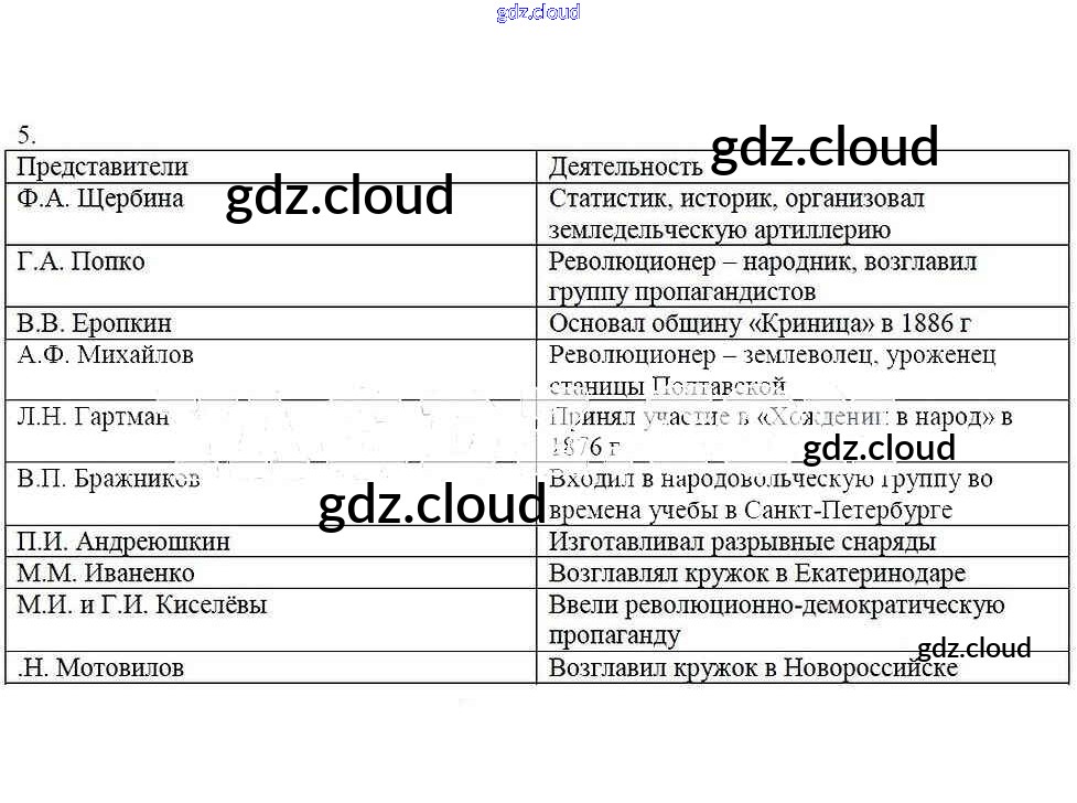 Ответ на задание 5 Рабочая тетрадь Кубановедение за 8 (восьмой) класс Гриценко 2018 онлайн и без номера телефона.
