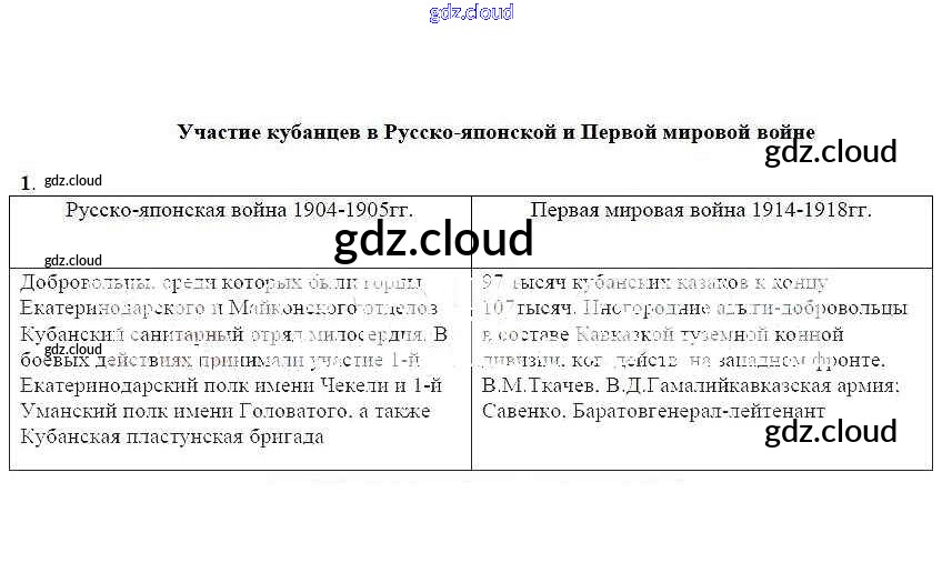 Ответ на задание 1 Рабочая тетрадь Кубановедение за 9 (девятый) класс Лунева 2018