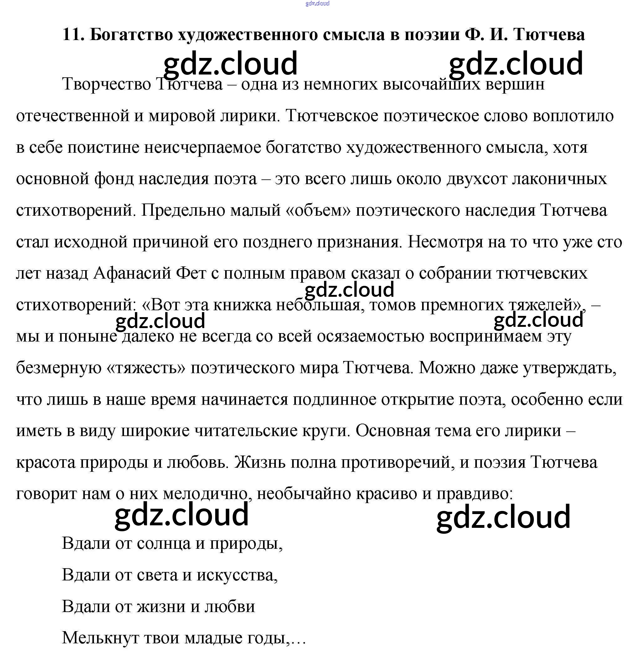 Ответ на задание 11. Богатство художественного смысла в поэзии Ф. И. Тютчева Сочинения Литература за 10 (десятый) класс Еременко Сам себе репетитор 2020
