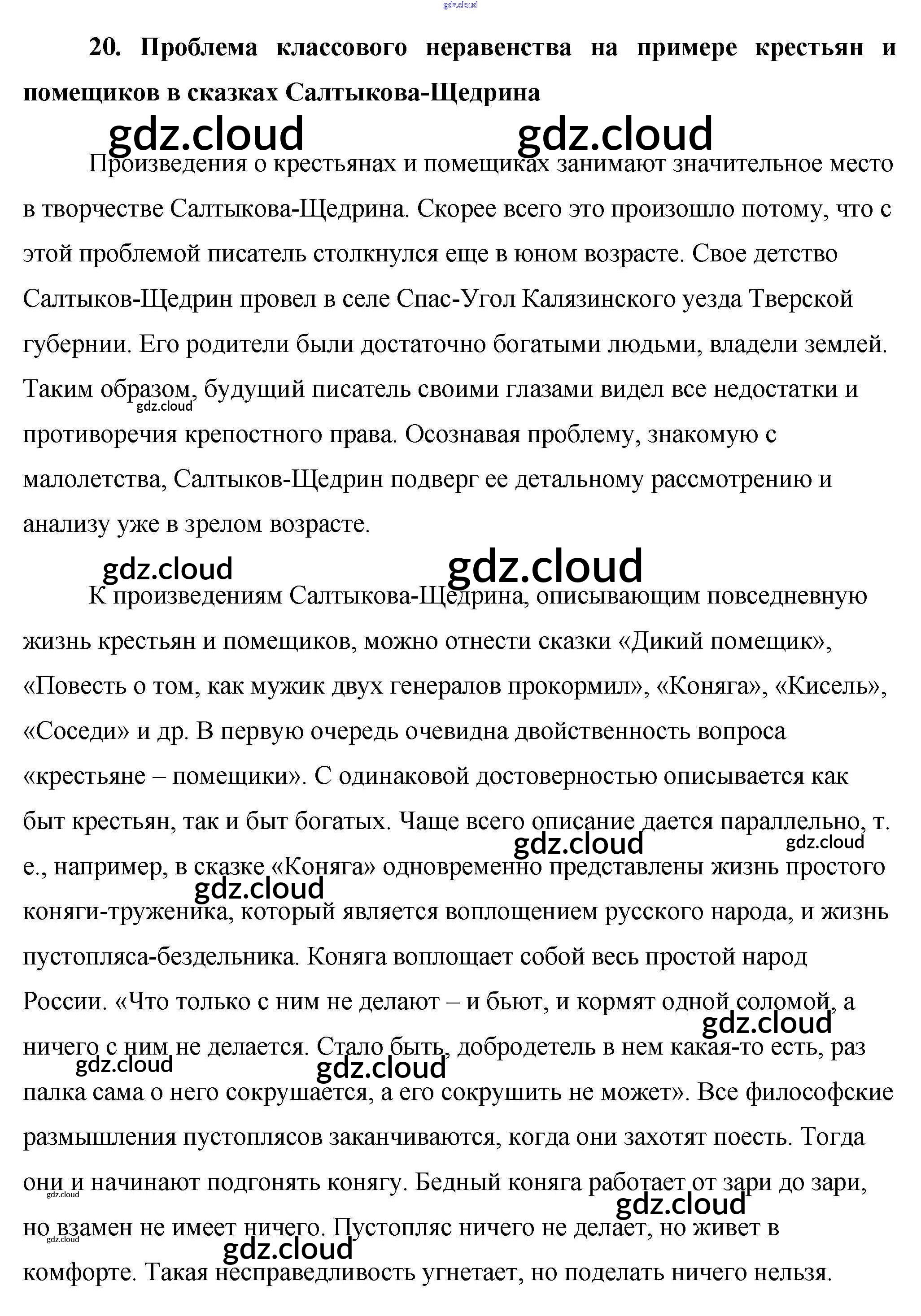Ответ на задание 20. Проблема классового неравенства на примере крестьян и помещиков в сказках Салтыкова Щедрина Сочинения Литература за 10 (десятый) класс Еременко Сам себе репетитор 2020