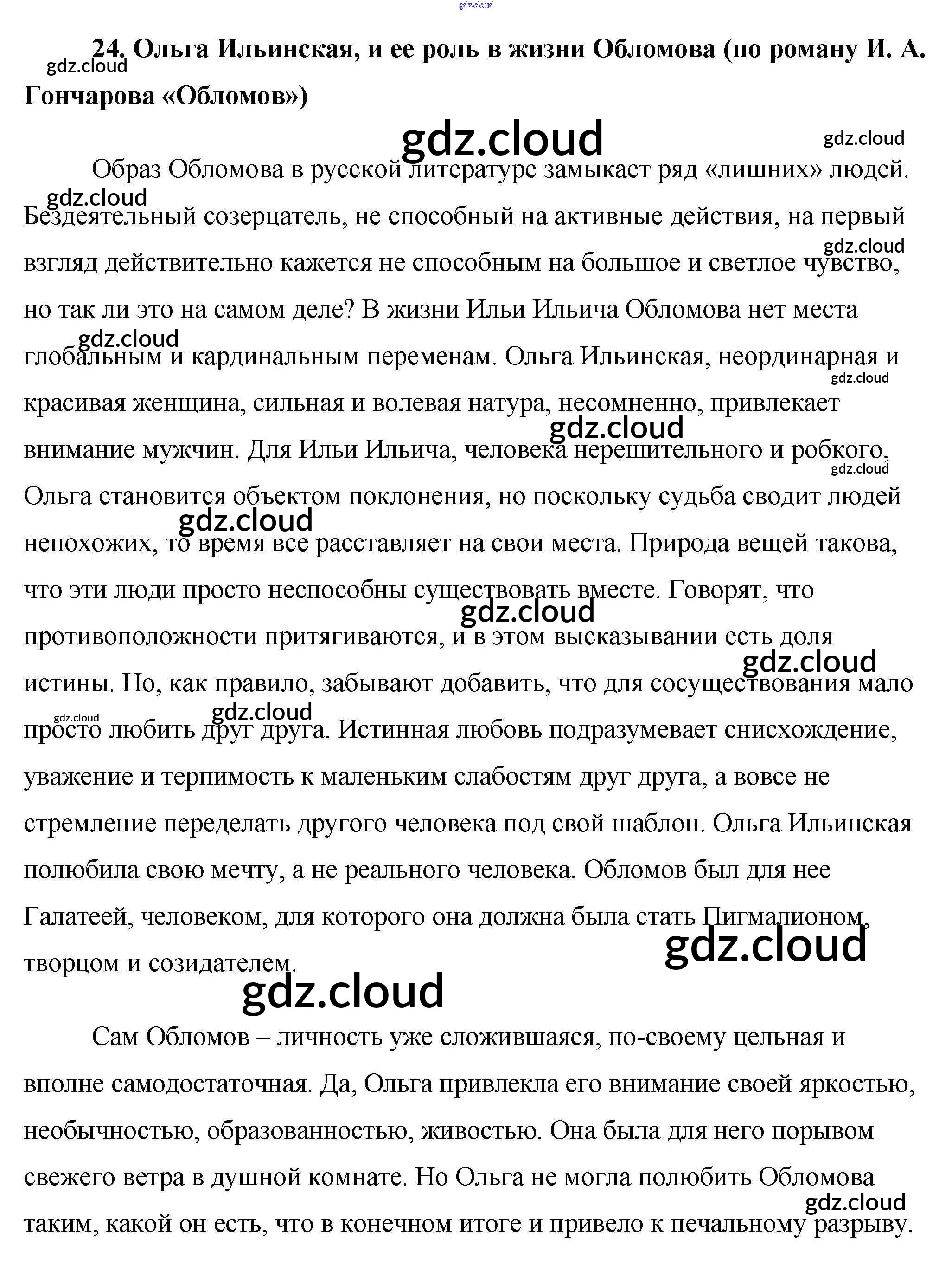 Ответ на задание 24. Ольга Ильинская, и ее роль в жизни Обломова (по роману И. А. Гончарова «Обломов») Сочинения Литература за 10 (десятый) класс Еременко Сам себе репетитор 2020