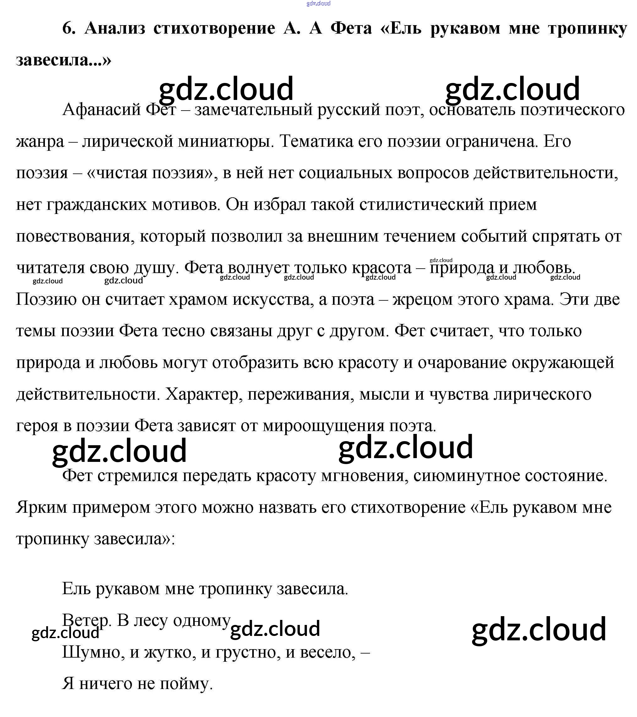 Ответ на задание 6. Анализ стихотворение А. А Фета «Ель рукавом мне тропинку завесила...» Сочинения Литература за 10 (десятый) класс Еременко Сам себе репетитор 2020