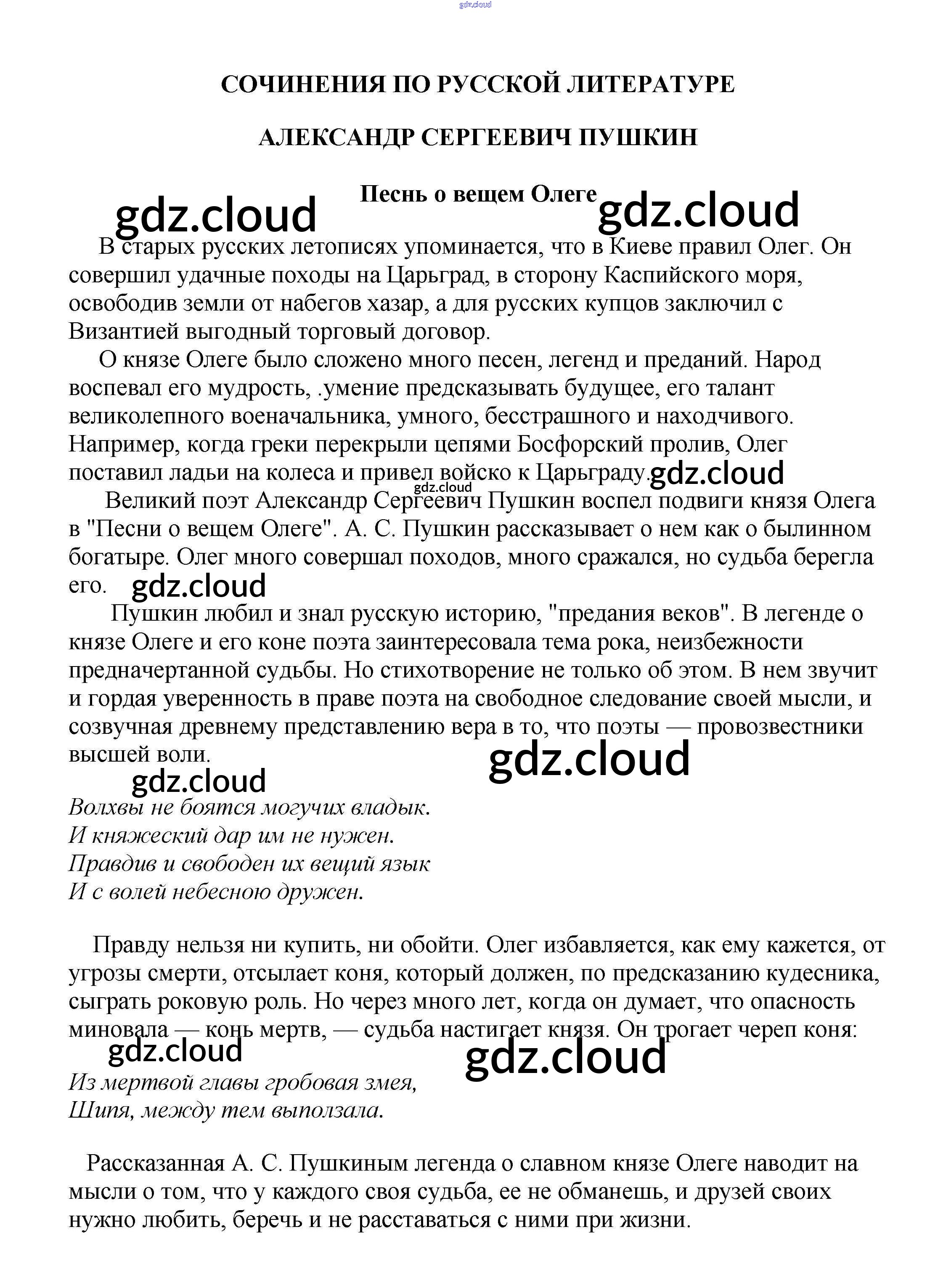 Ответ на задание Песнь о вещем Олеге Сочинения Литература за 5, 6, 7, 8, 9, 10 (пятый, шестой, седьмой, восьмой, девятый, десятый) класс Белик, Музычук 2017
