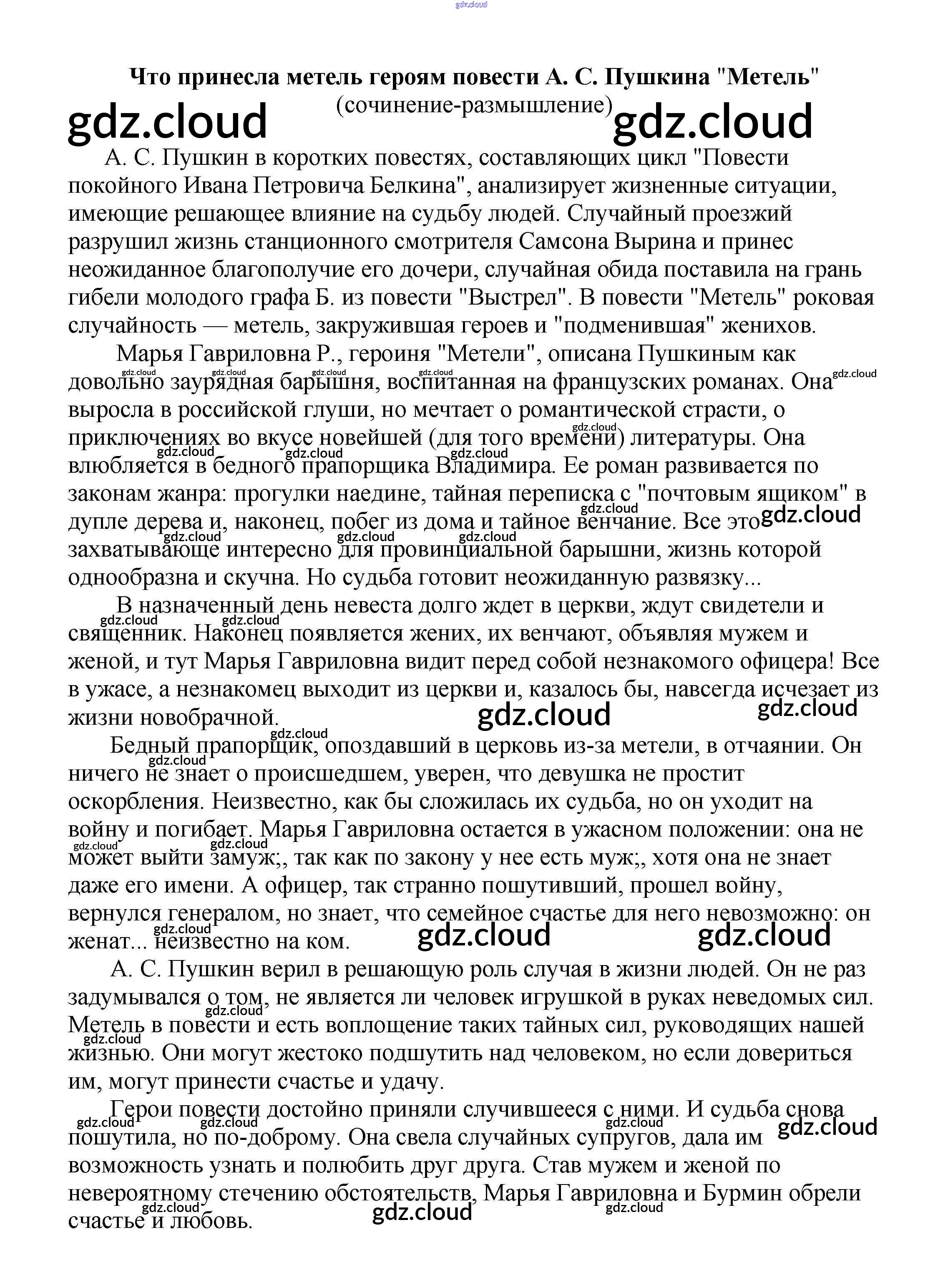Ответ на задание Что принесла метель героям повести А. С. Пушкина "Метель" (сочинение-размышление) Сочинения Литература за 5, 6, 7, 8, 9, 10 (пятый, шестой, седьмой, восьмой, девятый, десятый) класс Белик, Музычук 2017