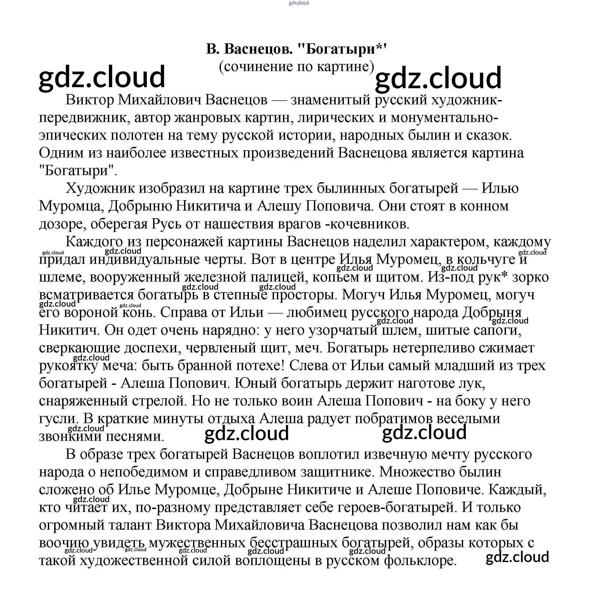 Ответ на задание В. Васнецов. "Богатыри*' (сочинение по картине) Сочинения Литература за 5, 6, 7, 8, 9, 10 (пятый, шестой, седьмой, восьмой, девятый, десятый) класс Белик, Музычук 2017