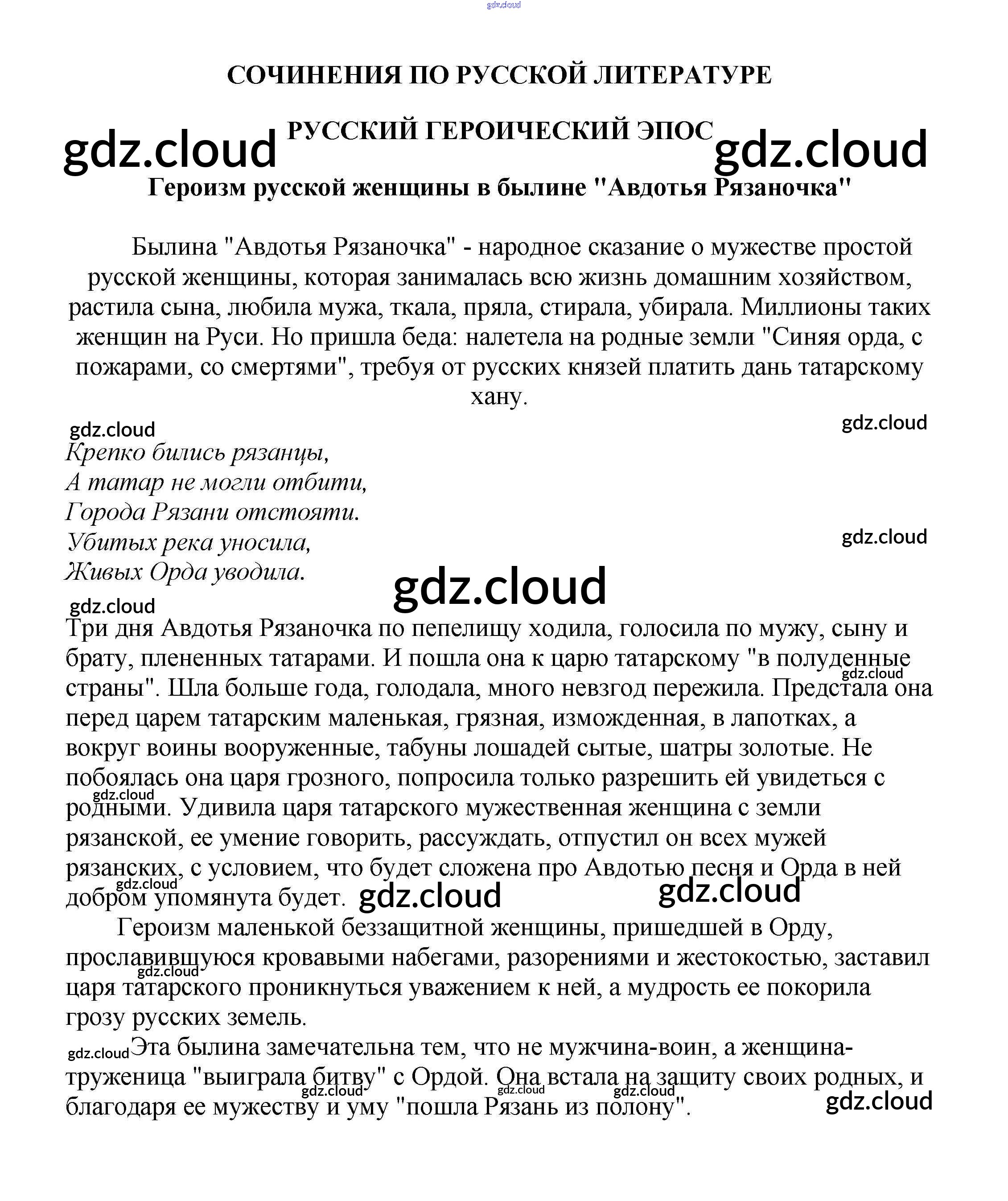 Ответ на задание Героизм русской женщины в былине "Авдотья Рязаночка" Сочинения Литература за 5, 6, 7, 8, 9, 10 (пятый, шестой, седьмой, восьмой, девятый, десятый) класс Белик, Музычук 2017