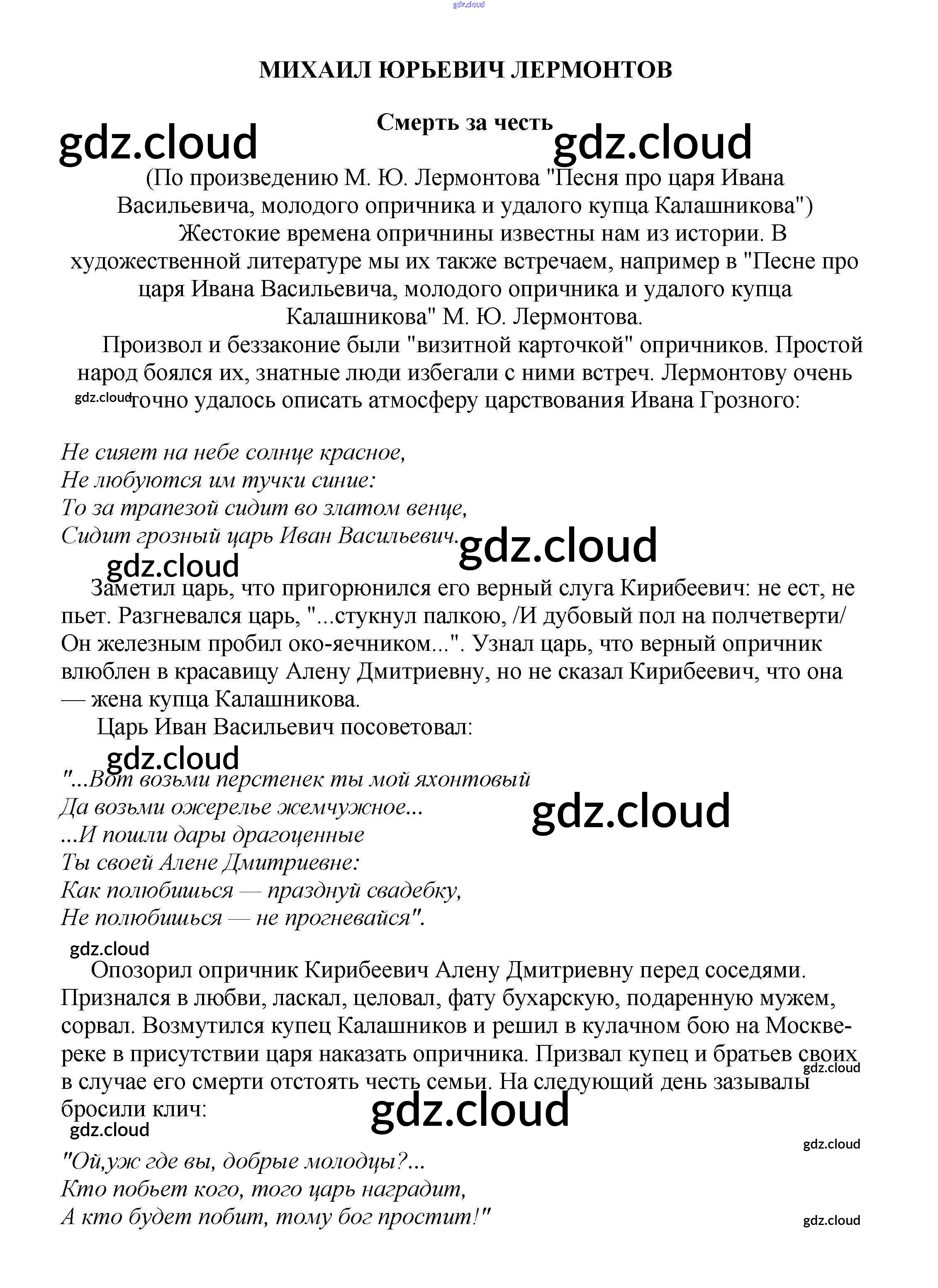 Ответ на задание Смерть за честь Сочинения Литература за 5, 6, 7, 8, 9, 10 (пятый, шестой, седьмой, восьмой, девятый, десятый) класс Белик, Музычук 2017