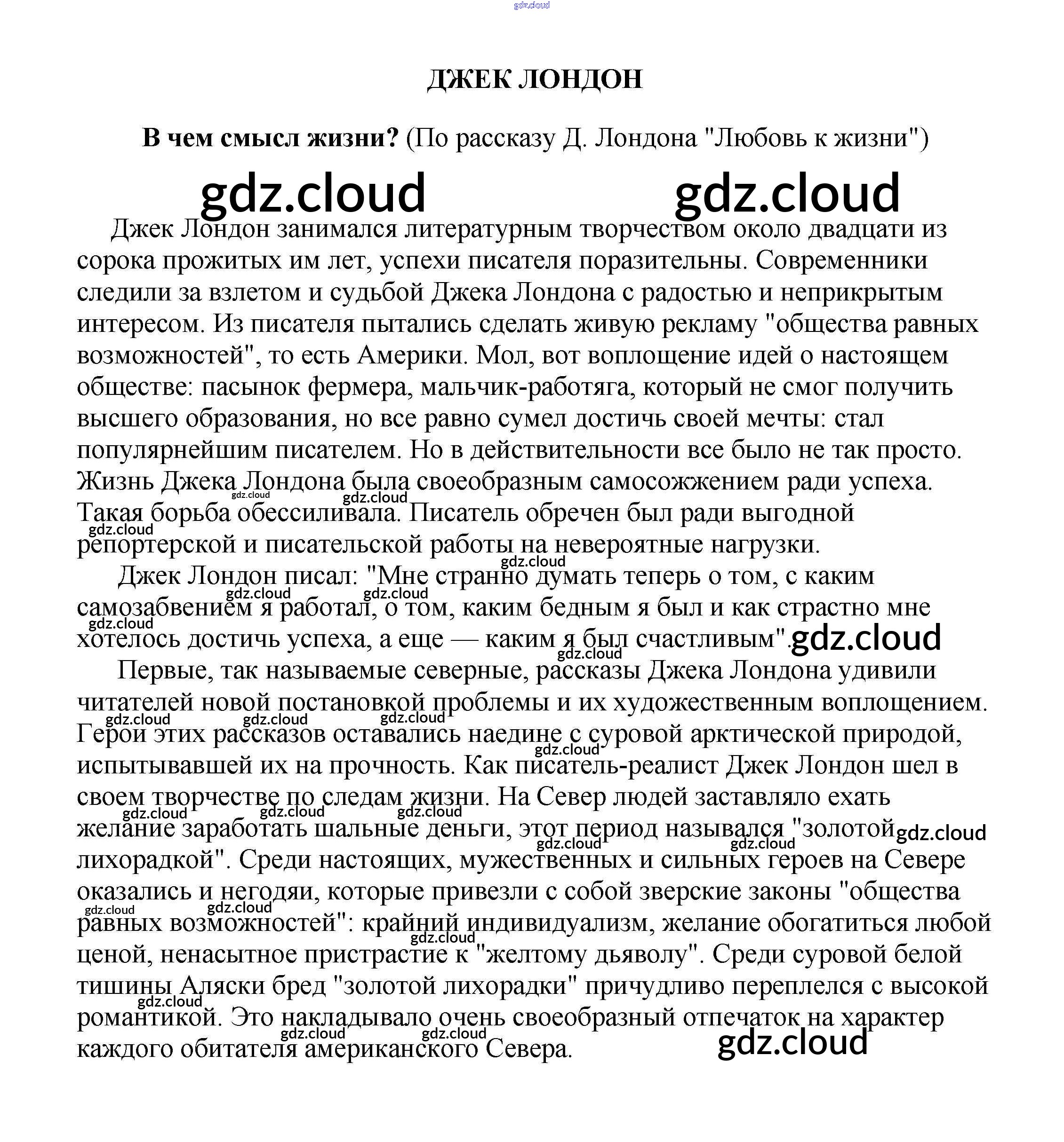 Ответ на задание В чем смысл жизни? (По рассказу Д. Лондона "Любовь к жизни") Сочинения Литература за 5, 6, 7, 8, 9, 10 (пятый, шестой, седьмой, восьмой, девятый, десятый) класс Белик, Музычук 2017