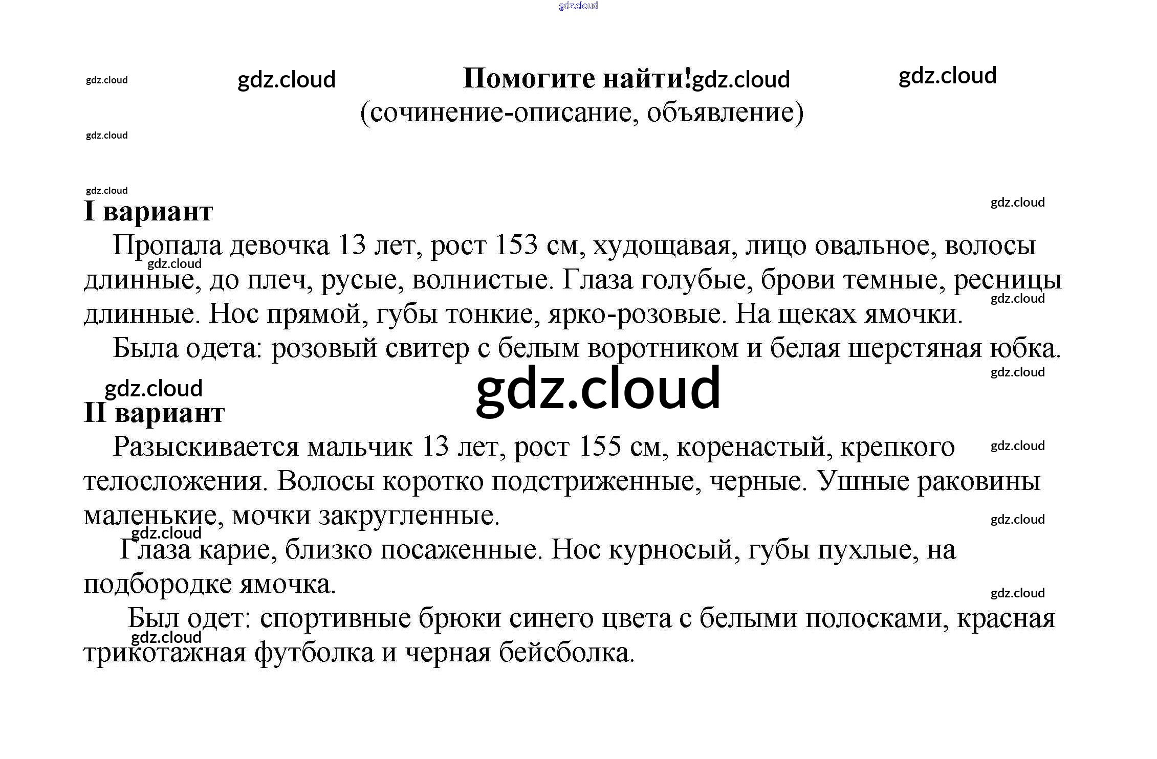 7 класс / сочинения на свободную тему / Помогите найти! (сочинение-описание, объявление)