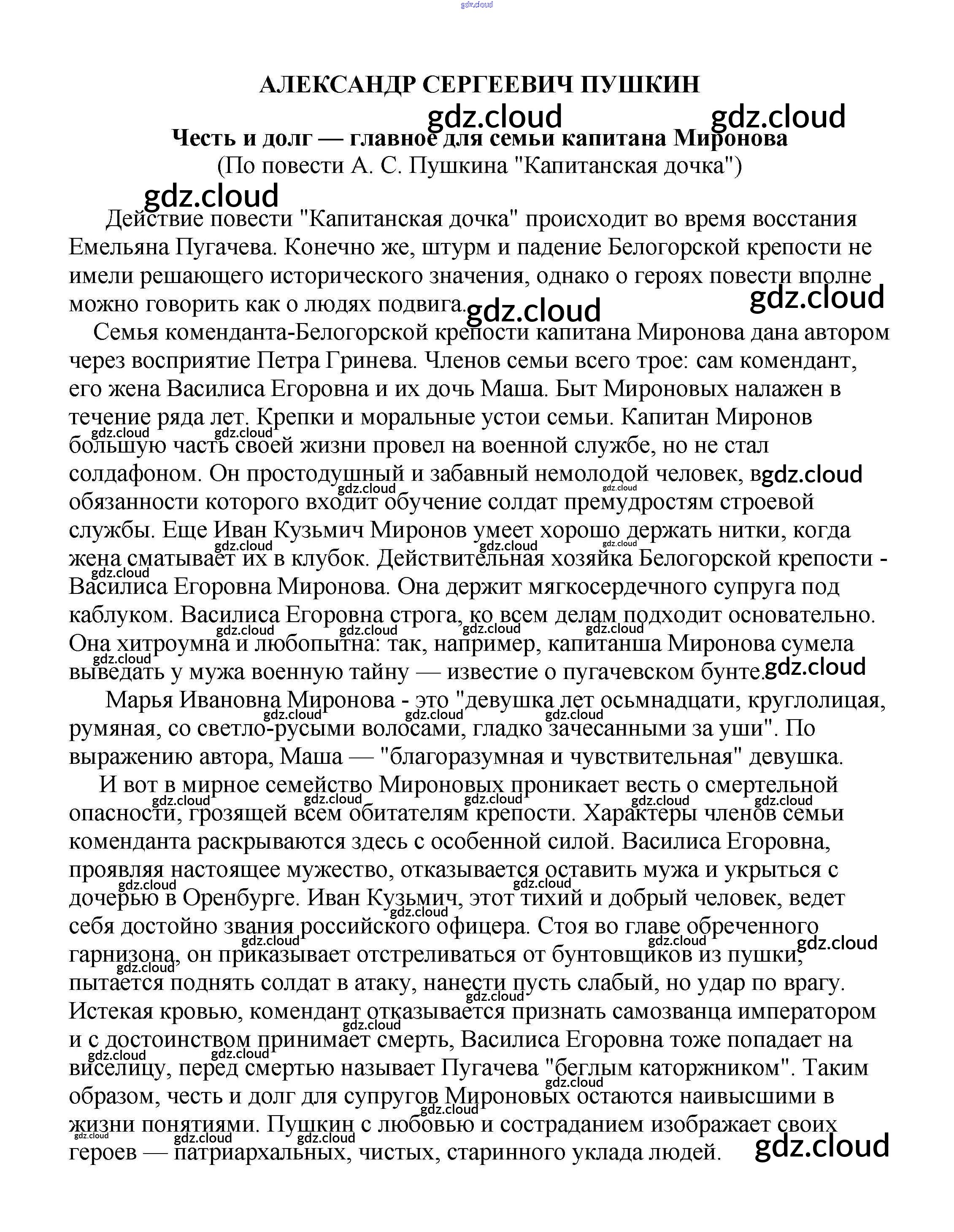 8 класс / сочинения по русской литературе / Честь и долг — главное для семьи капитана Миронова (По повести А. С. Пушкина "Капитанская дочка")
