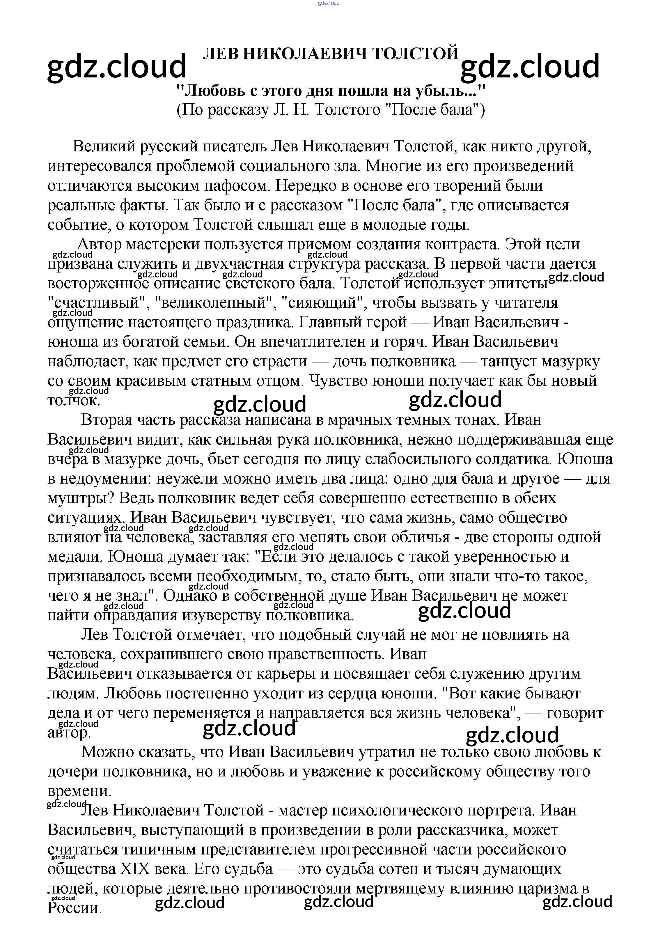 Ответ на задание "Любовь с этого дня пошла на убыль..." (По рассказу Л. Н. Толстого "После бала") Сочинения Литература за 5, 6, 7, 8, 9, 10 (пятый, шестой, седьмой, восьмой, девятый, десятый) класс Белик, Музычук 2017