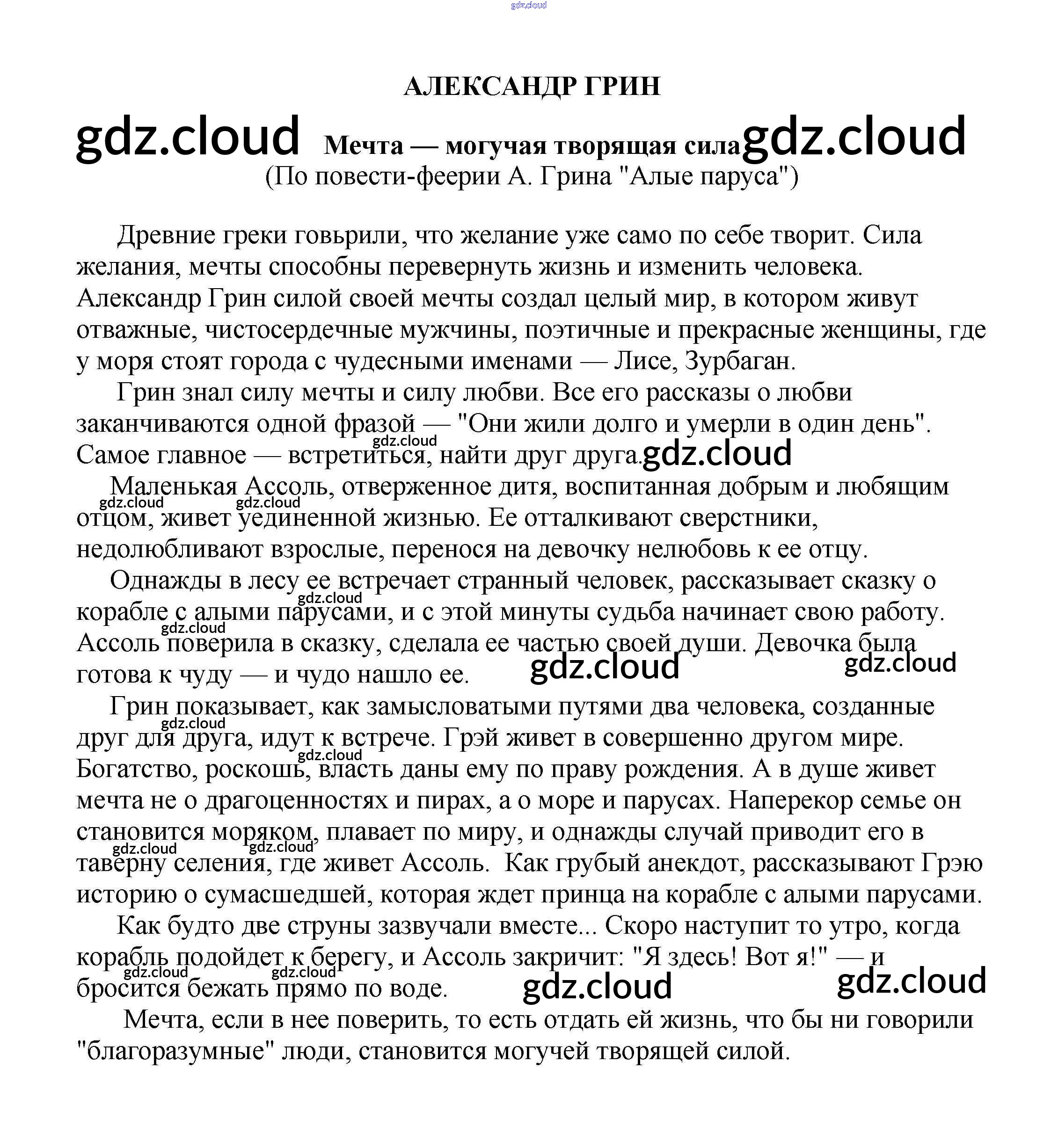 Ответ на задание Мечта — могучая творящая сила (По повести-феерии А. Грина "Алые паруса") Сочинения Литература за 5, 6, 7, 8, 9, 10 (пятый, шестой, седьмой, восьмой, девятый, десятый) класс Белик, Музычук 2017